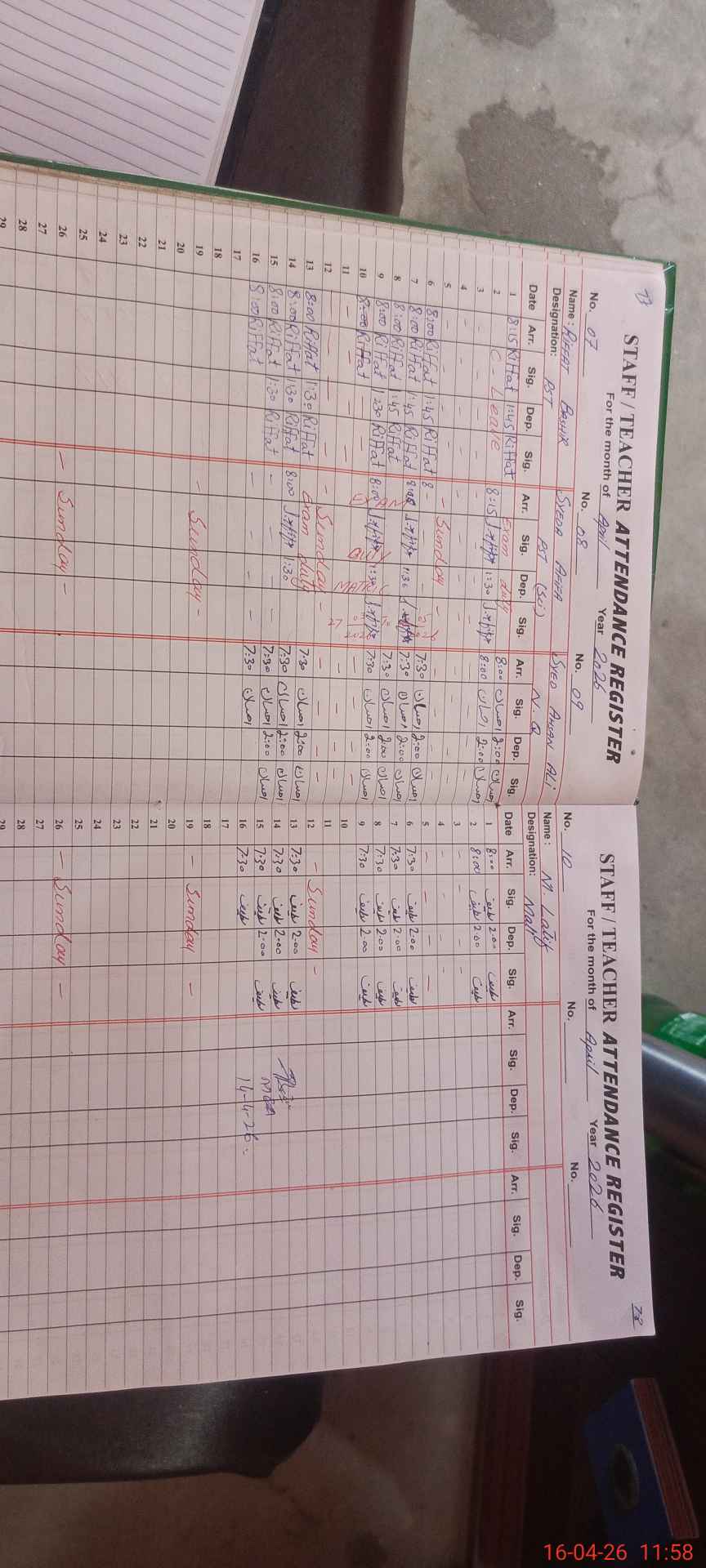 | Attendance Register | Head Teacher | MEA with School | Visit Proof |