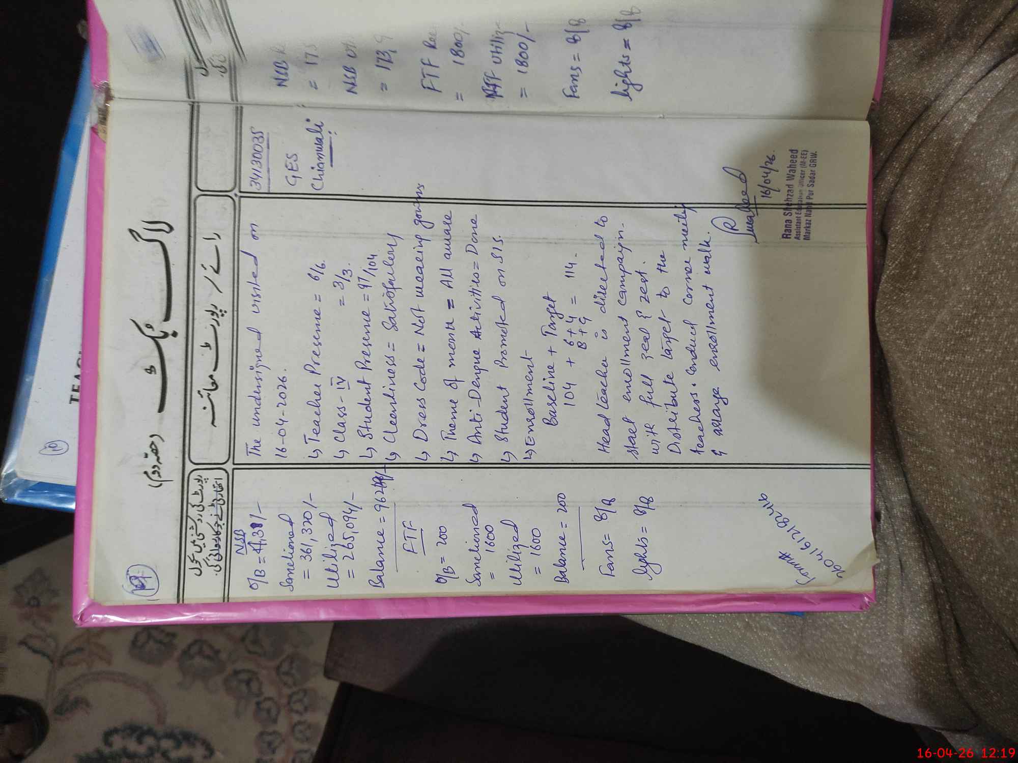 | Attendance Register | Head Teacher | MEA with School | Visit Proof |