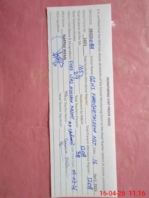 | EMIS Code: 38420088 | Name of School: GGHS FAROGH-E-TALEEM NST SARGODHA | |||