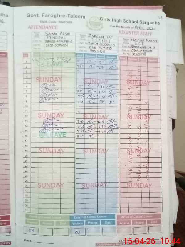 | 38**** | Hi**** Al**** Kh**** | SSE Physics/Maths | Contract | 0 | 0 | 0 | 0 | 0 | 0 | 0 | 0 | 0 | Exam Duty |