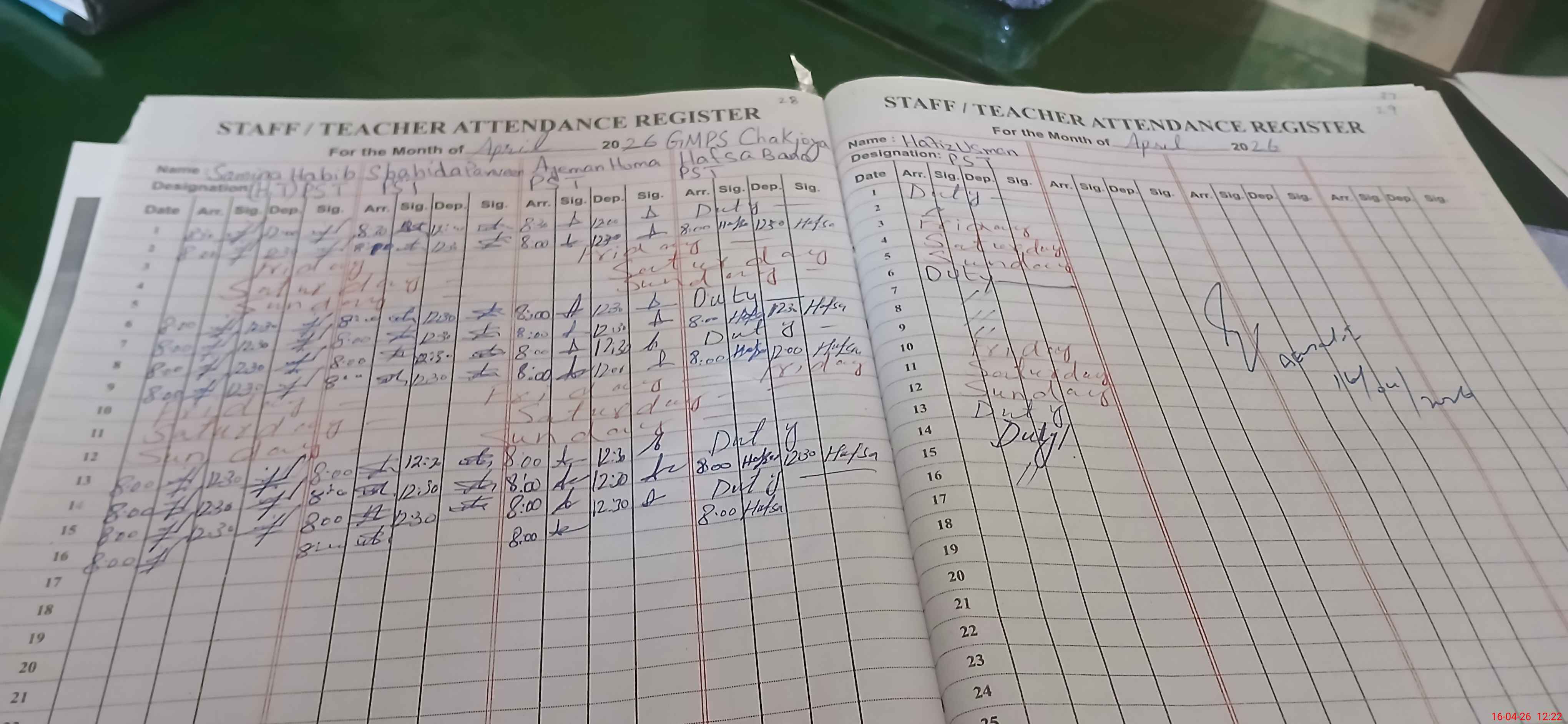 | Leave | Duty | Absent | Maternity | Medical | Ex- Pak |