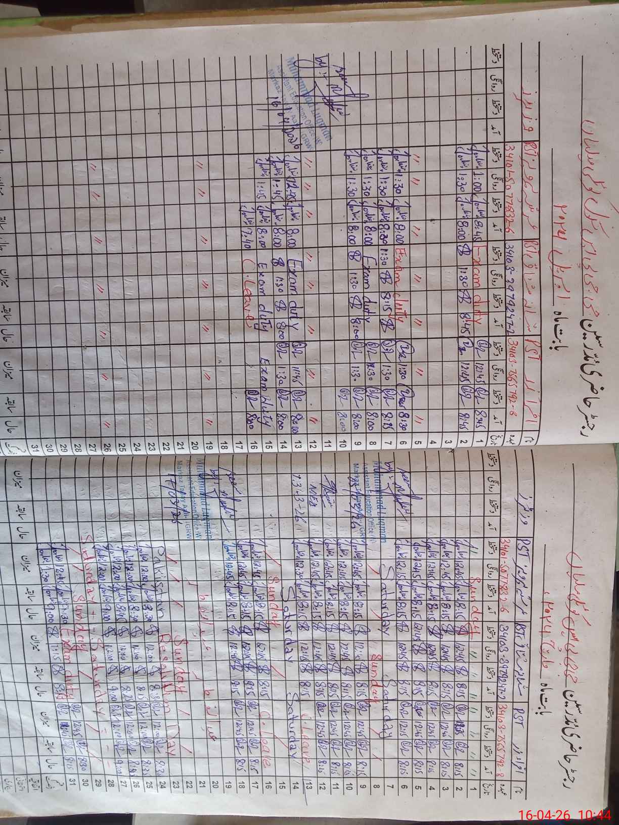 | Leave | Duty | Absent | Maternity | Medical | Ex- Pak |