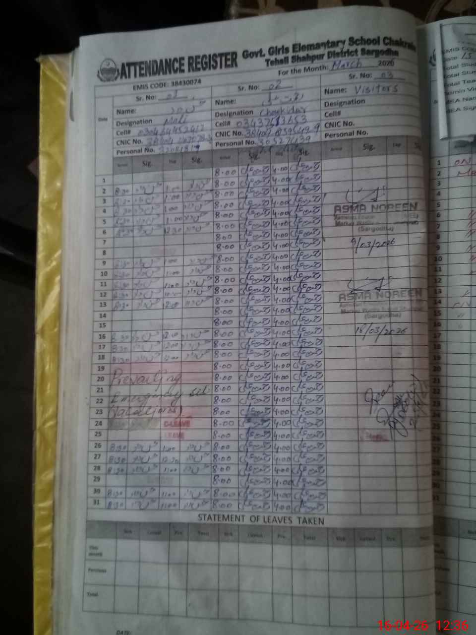 | 38**** | Na**** Iq**** | PST Science/Maths | Regular | 0 | 0 | 0 | 0 | 0 | 0 | 0 | 0 | 0 | Maternity |