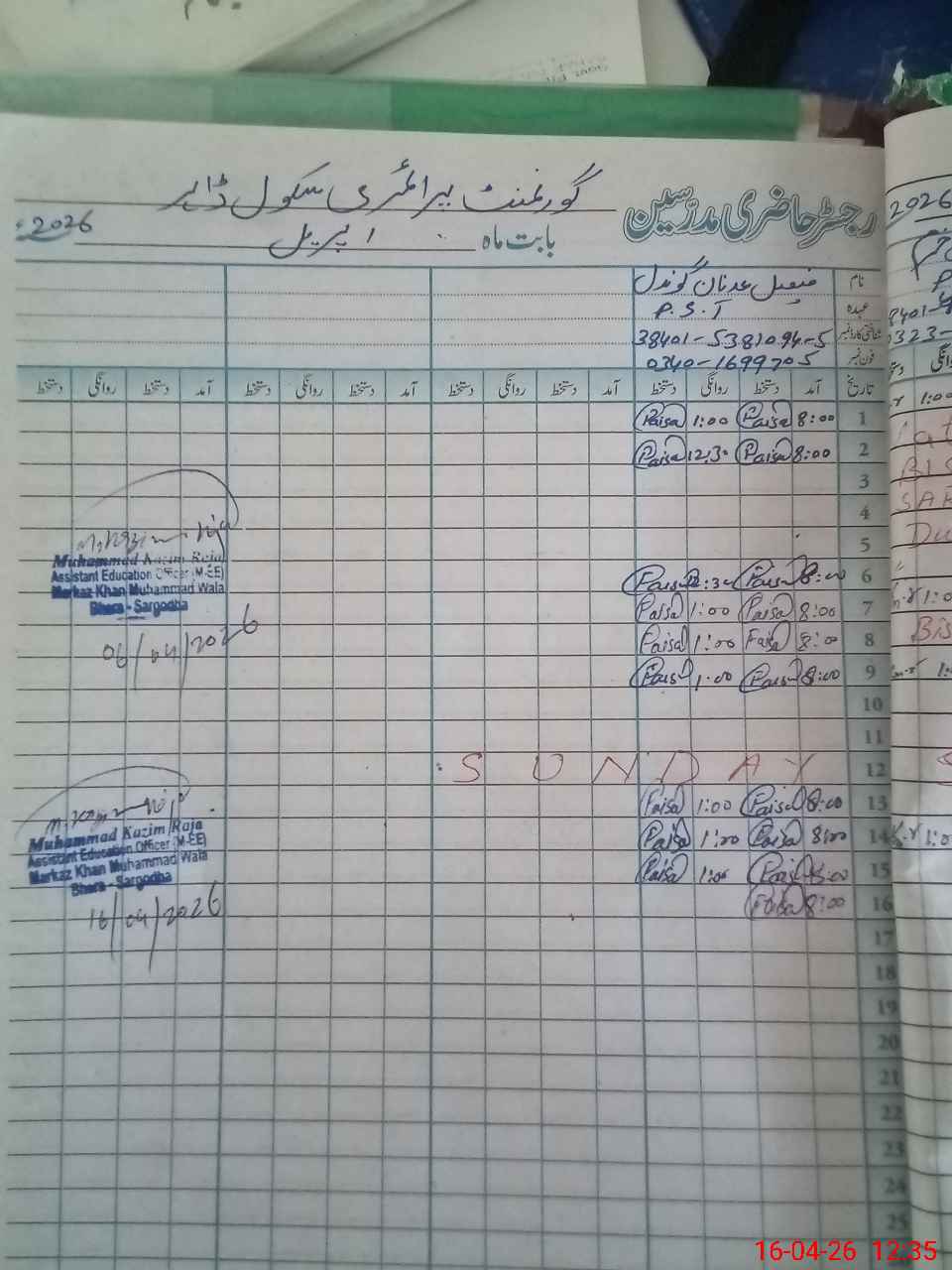 | Name: Mu**** Fa**** Designation: (School Headmaster's/Headmistress's) PST Phone/Cell Number: 03**** |