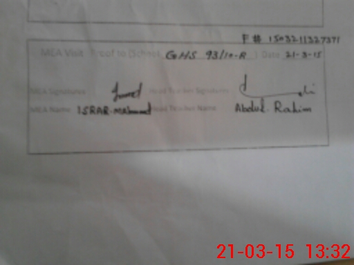 | Name: Wa**** Ha**** Ra**** Designation: (School Headmaster's/Headmistress's) SHM Phone/Cell Number: 03**** |