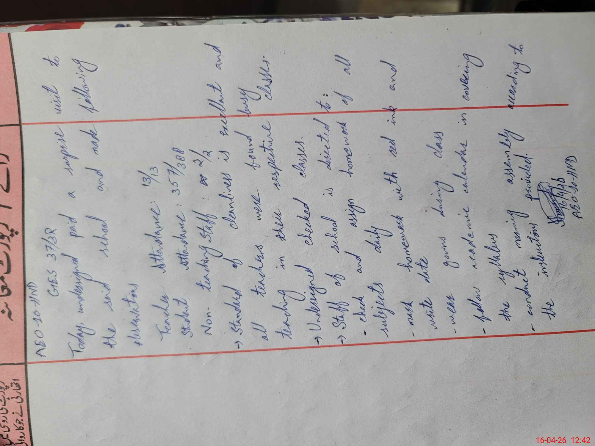 | Attendance Register | Head Teacher | MEA with School | Visit Proof |