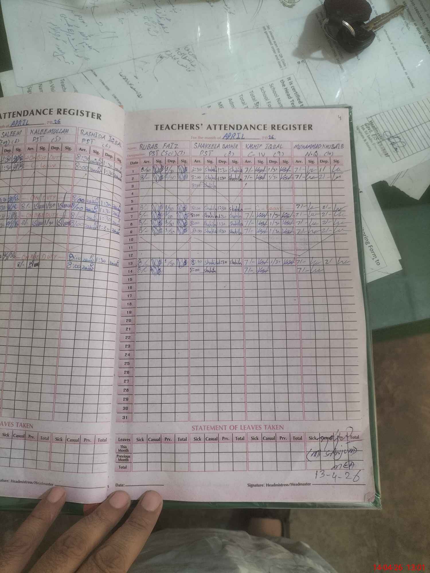 | Leave | Duty | Absent | Maternity | Medical | Ex- Pak |