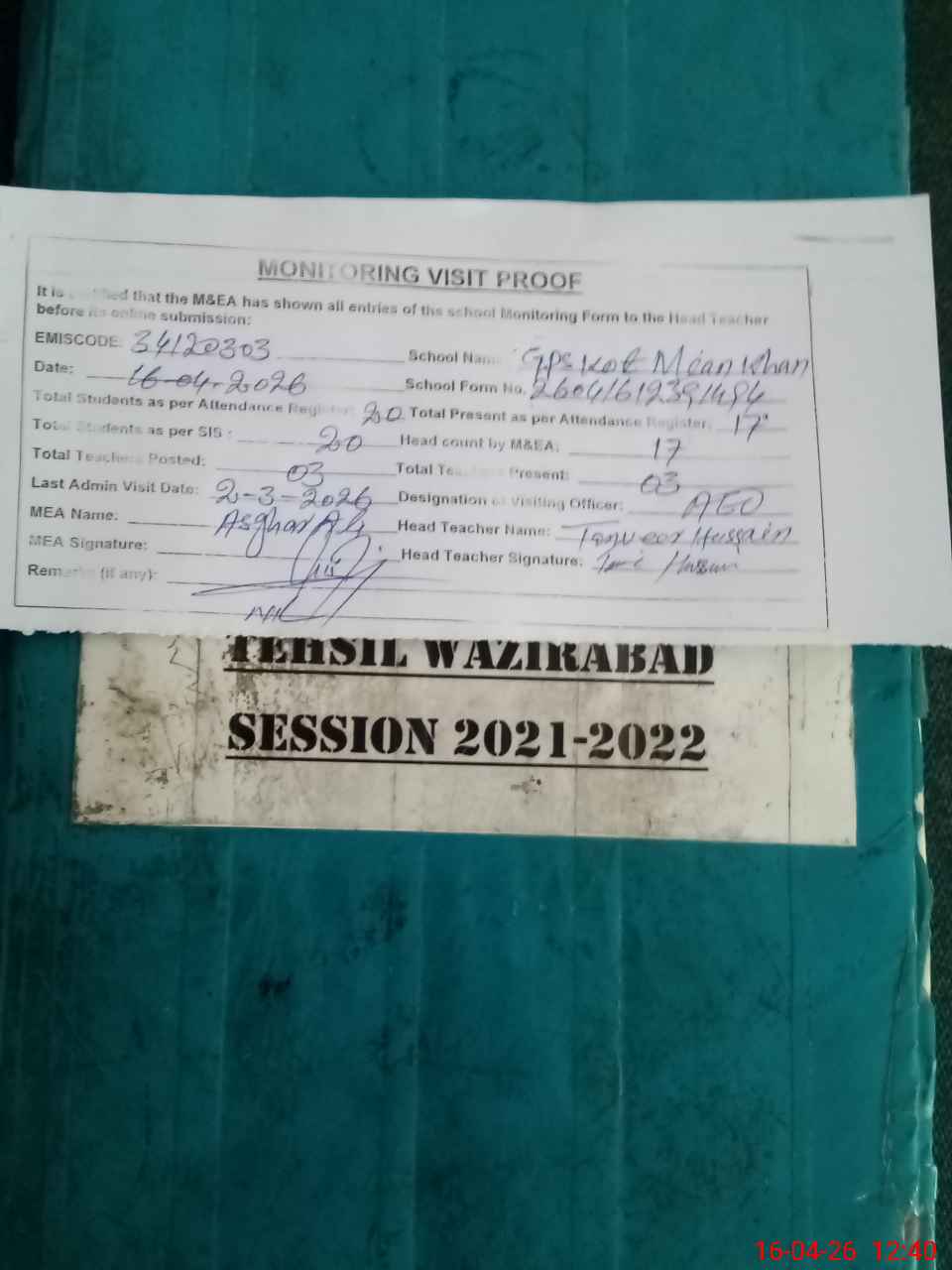 | EMIS Code: 34120303 | Name of School: GPS KOT MIAN KHAN | |||