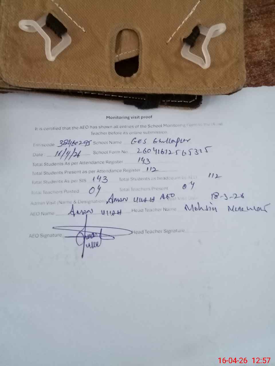 | EMIS Code: 38460295 | Name of School: GES GHULLA PUR | |||