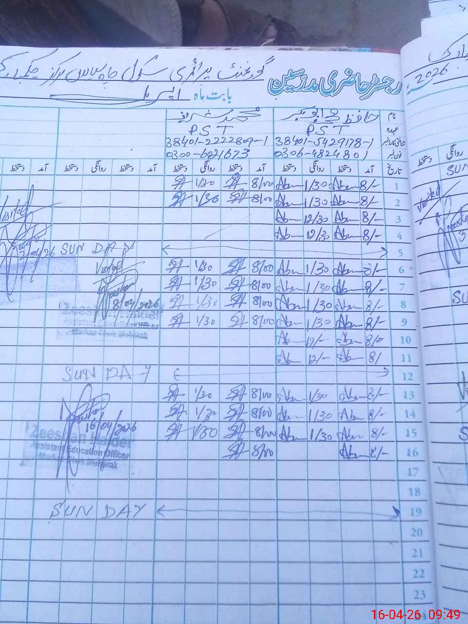 | Name: MAb**** Ba**** Designation: (School Headmaster's/Headmistress's) PST Phone/Cell Number: 03**** |