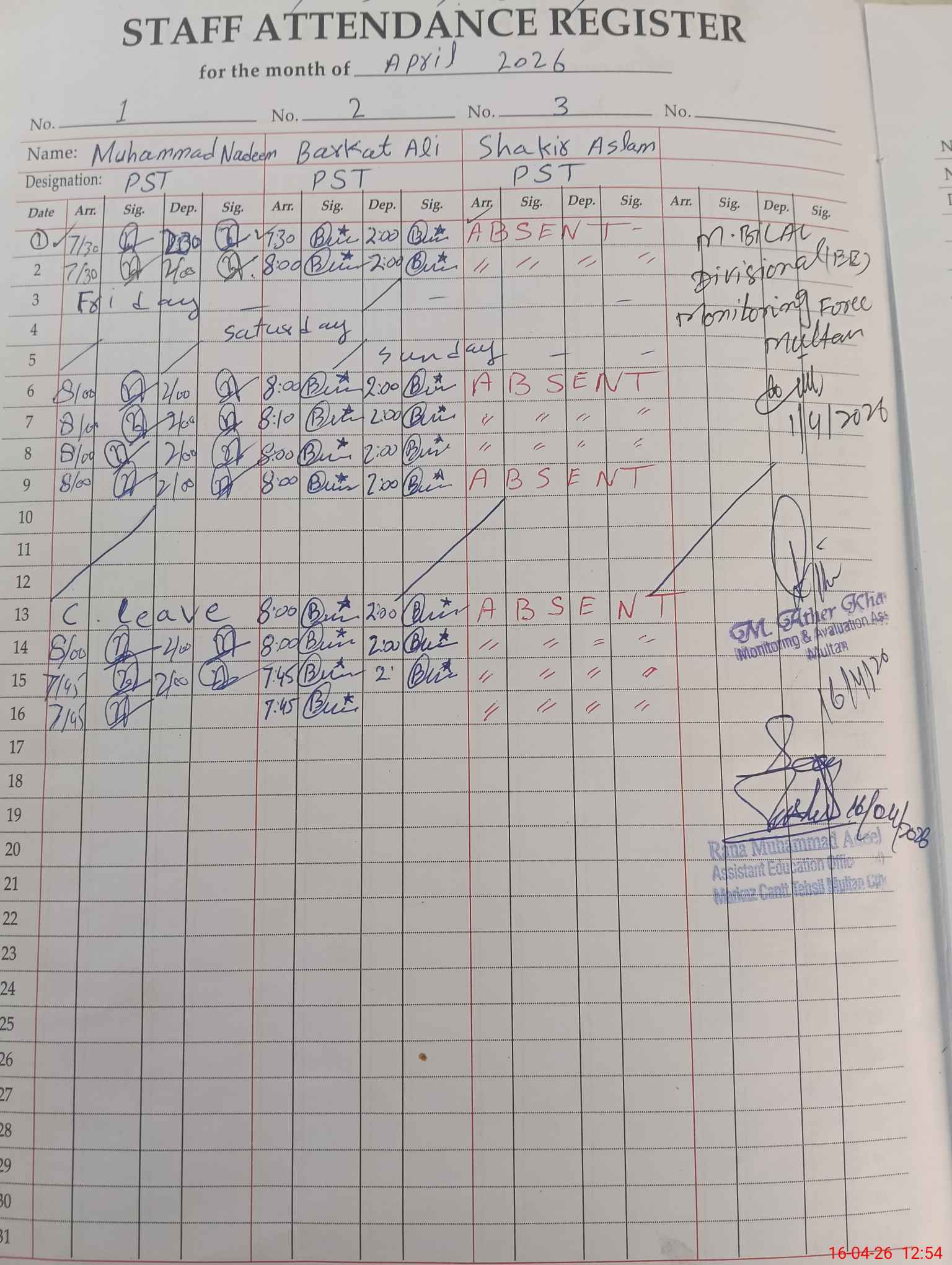 | 36**** | Sh**** As**** | PST Arts | Regular | 0 | 0 | 0 | 0 | 0 | 0 | 0 | 0 | 0 | Absent (Un-Authorized) |