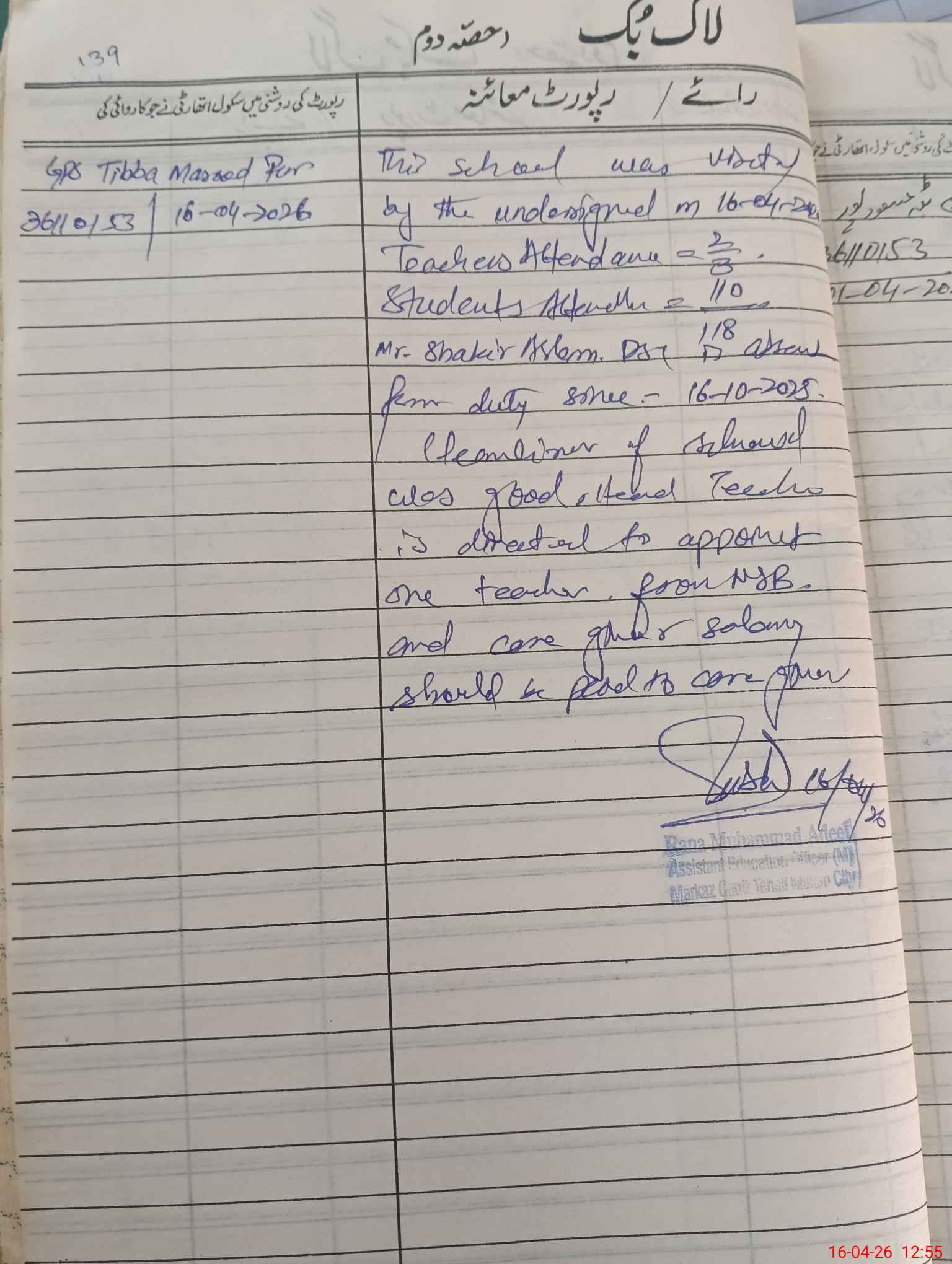 | EMIS Code: 36110153 | Name of School: GPS TIBBA MASOOD PUR P/O ISMAILABAD | |||