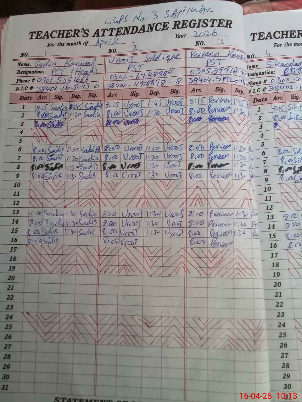 | Name: SA**** KA**** Designation: (School Headmaster's/Headmistress's) PST Phone/Cell Number: 03**** |