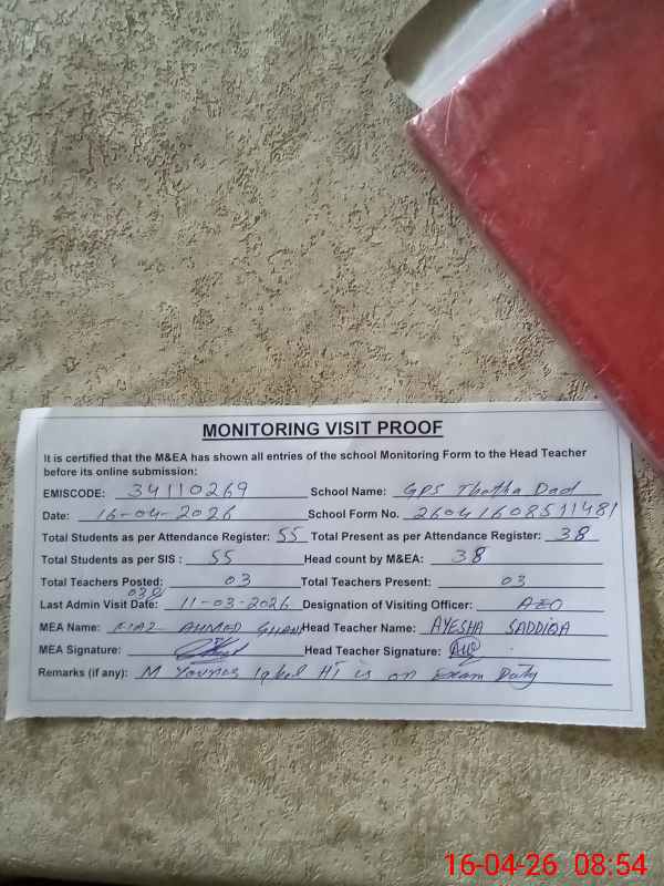 | EMIS Code: 34110269 | Name of School: GPS THATHA DAD | |||
