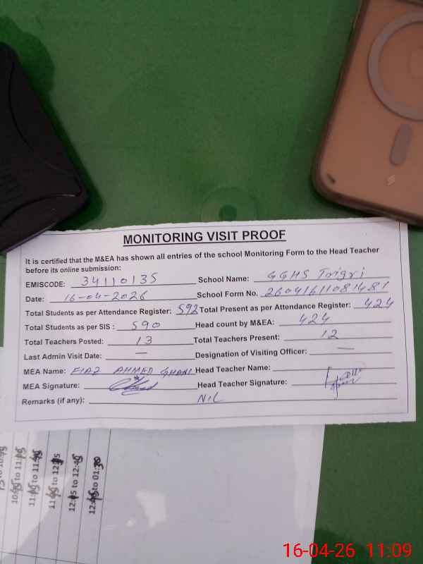 | EMIS Code: 34110135 | Name of School: GGHS TARIGRI | |||