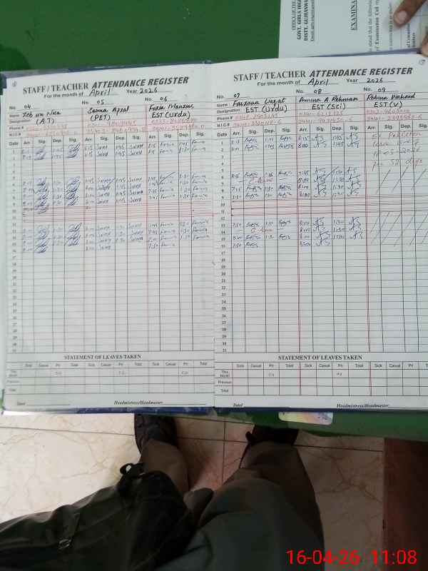 | Remarks (Use Separate Page if Required): Students Attendance Registers are required updation Data as per provided by School Staff and found during physical visit | |||||