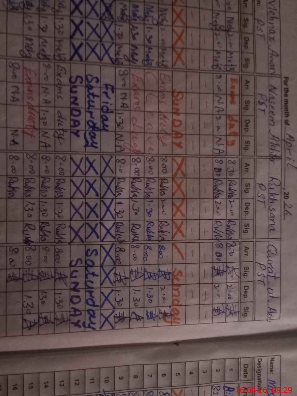| Monitoring Date: 16-04-2026 | Start Time: 16-04-2026 09:26 AM | End Time: 16-04-2026 10:10 AM | Name of MEA: MU**** AT**** KH**** | |