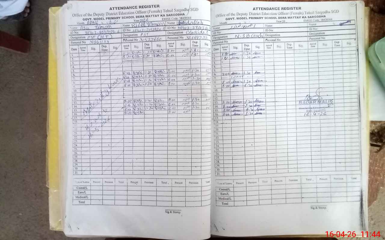| Name: AS**** TA**** Designation: (School Headmaster's/Headmistress's) PST Phone/Cell Number: 03**** |