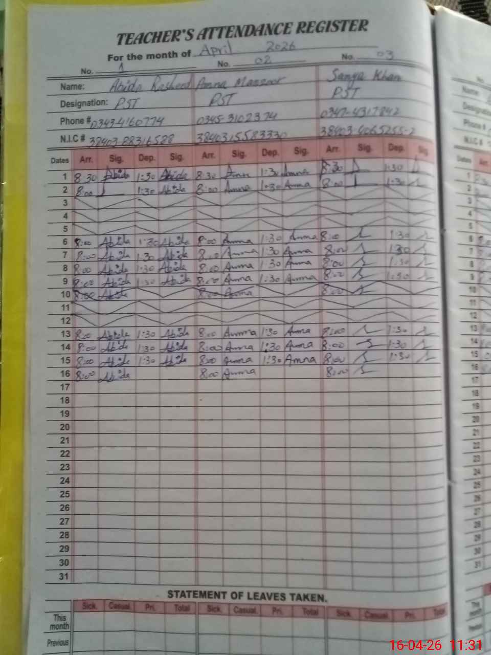 | Name: AB**** RA**** Designation: (School Headmaster's/Headmistress's) PST Phone/Cell Number: 03**** |