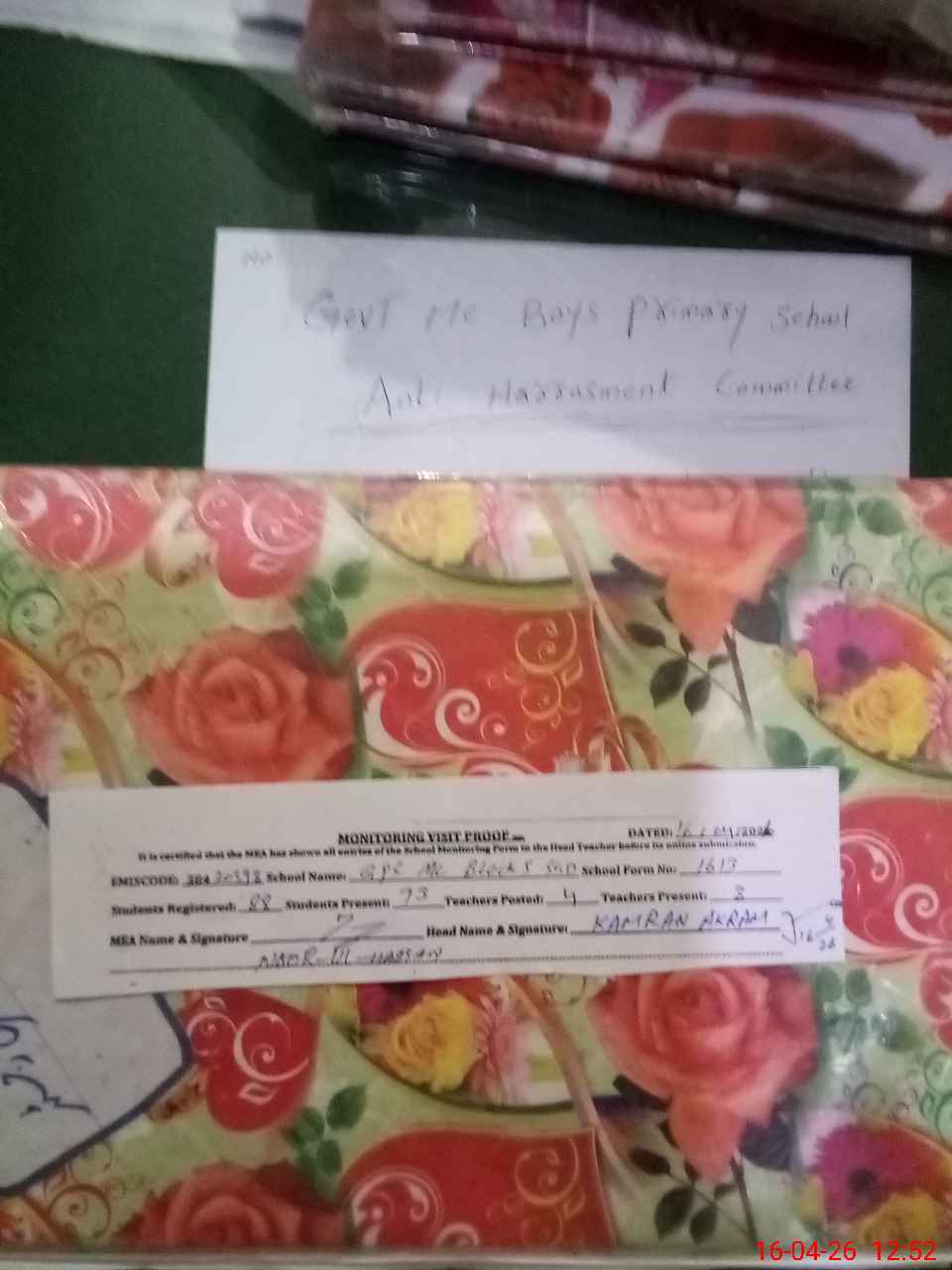 | Attendance Register | Head Teacher | MEA with School | Visit Proof |