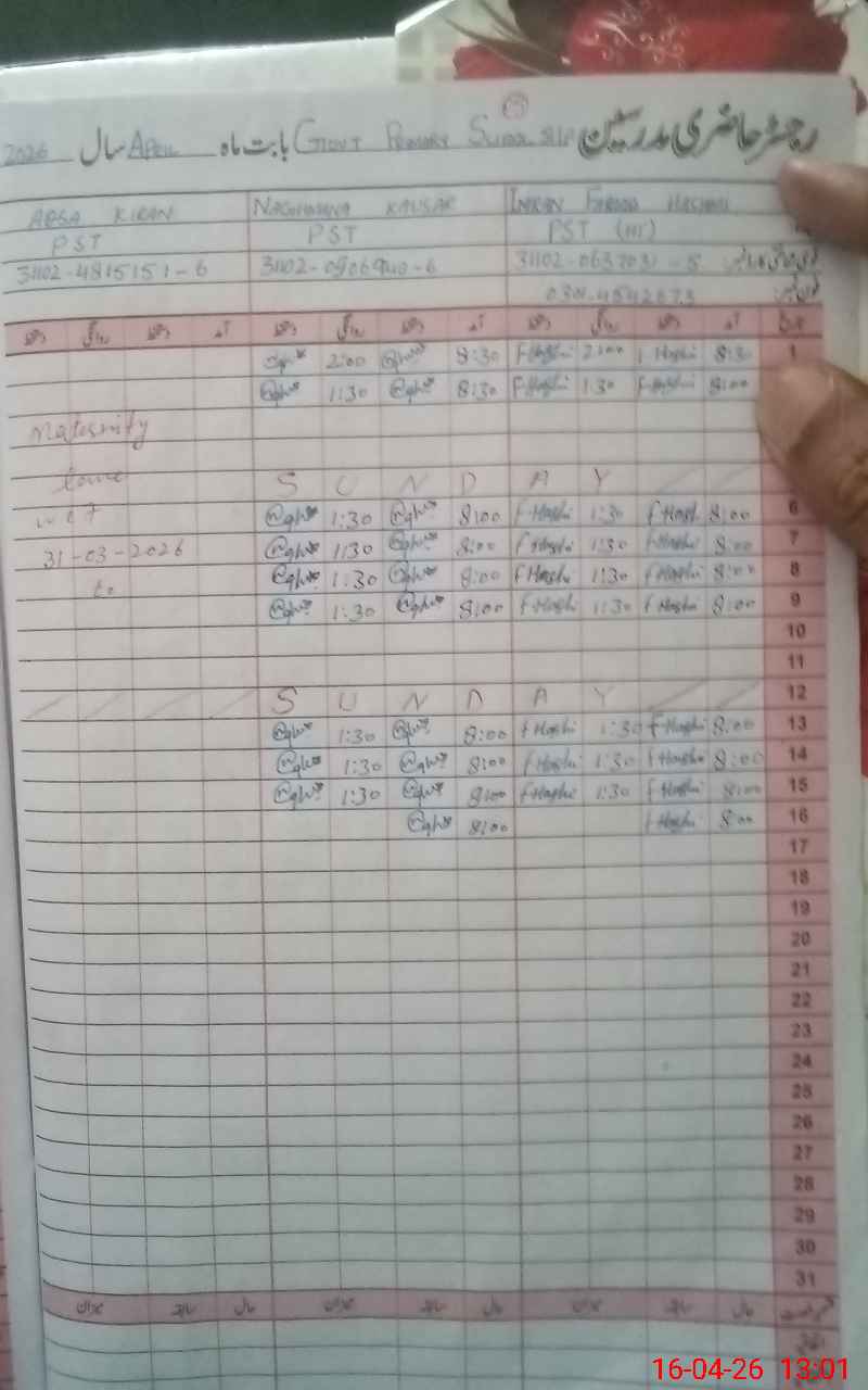 | Name: IM**** FA**** HA**** Designation: (School Headmaster's/Headmistress's) PST Phone/Cell Number: 03**** |
