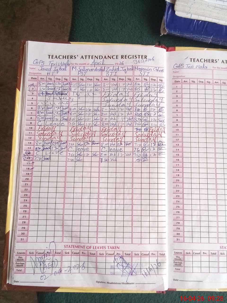 | Attendance Register | Head Teacher | MEA with School | Visit Proof |