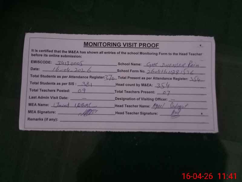 | EMIS Code: 34130005 | Name of School: GHS DHENSAR PAEEN | |||