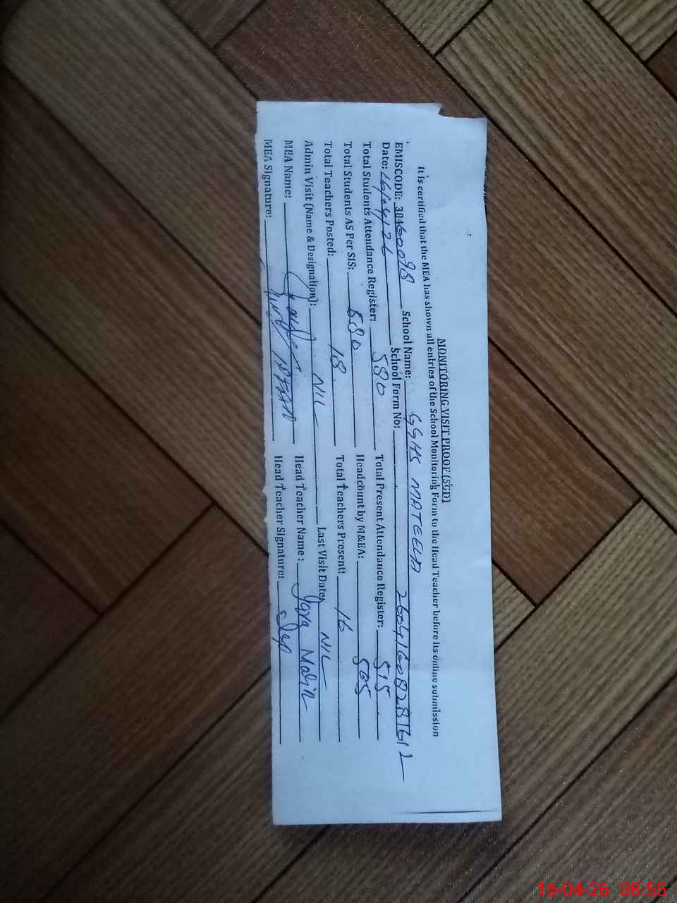 | Certified that this School was Inspected by the Undersigned MEA/DMO Today and the Information Stated Above is as Per Record. | |||||