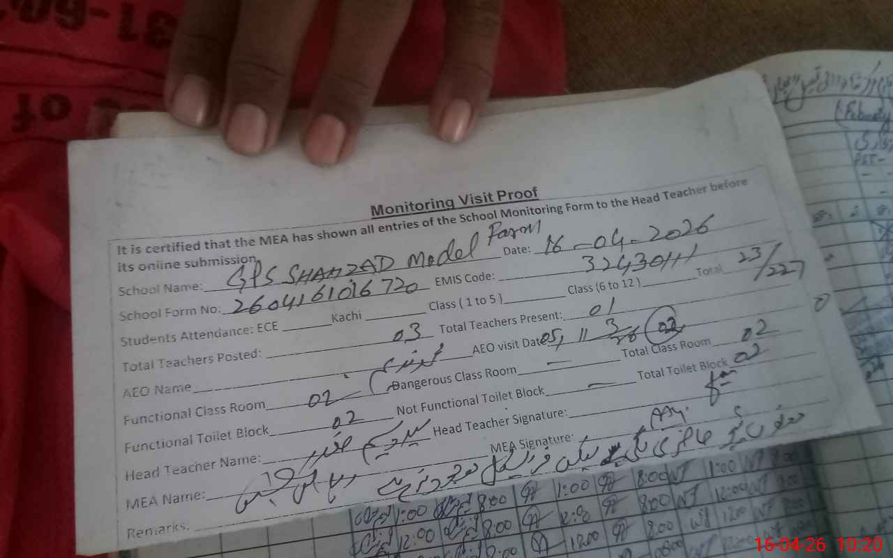 | EMIS Code: 32430111 | Name of School: GPS SHAHZAD MODEL FARM | |||