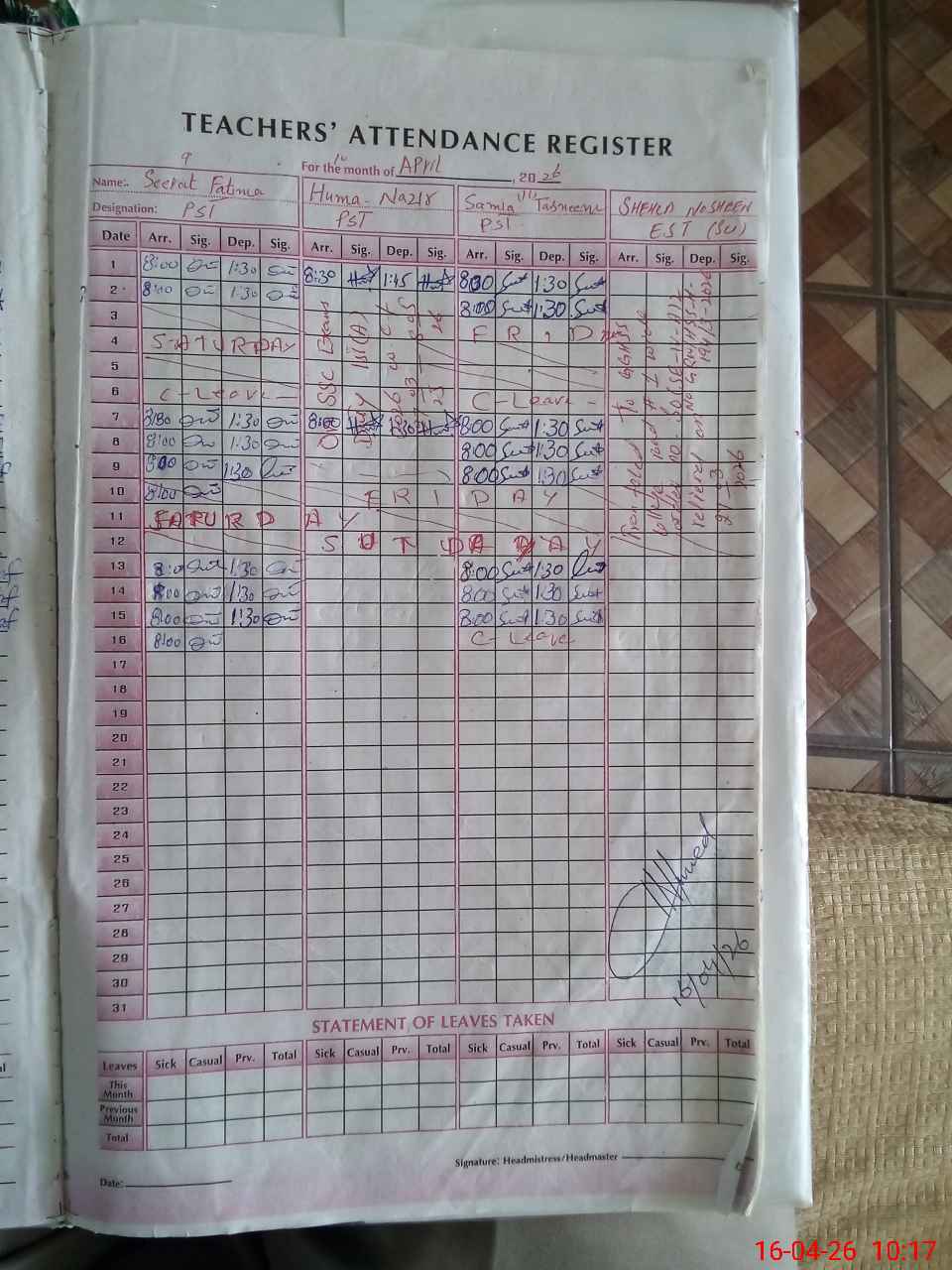 | 34**** | Ta**** Ra**** | EST (Math) | Regular | 0 | 0 | 0 | 0 | 0 | 0 | 0 | 0 | 0 | Absent (Un-Authorized) |