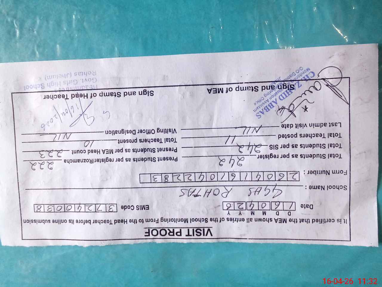 | EMIS Code: 37240038 | Name of School: GGHS ROHTAS | |||