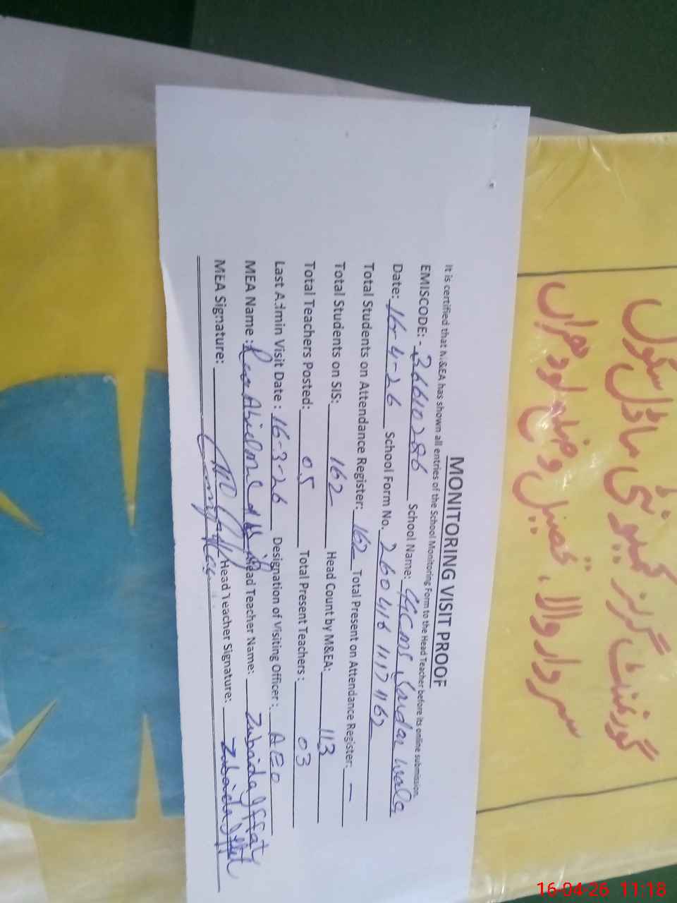 | EMIS Code: 36610286 | Name of School: GGCMS SARDAR WALA | |||