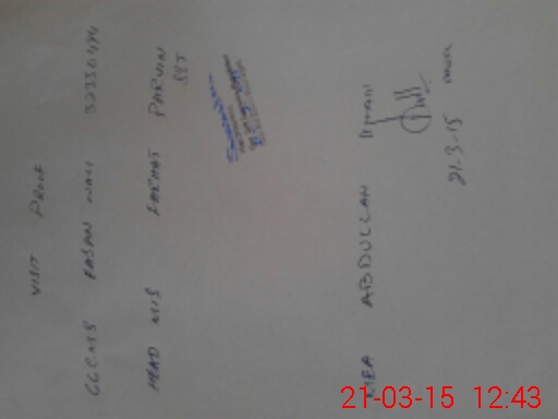 | Monitoring Date: 21-03-2015 | Start Time: 21-03-2015 12:18 PM | End Time: 21-03-2015 12:43 PM | Name of MEA: Ab**** Kh**** | |