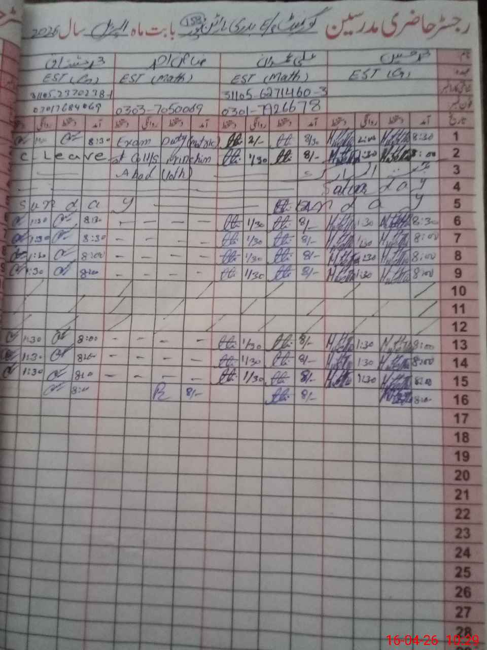 | Name: Za**** Iq**** Designation: (School Headmaster's/Headmistress's) EST Science Phone/Cell Number: 03**** |