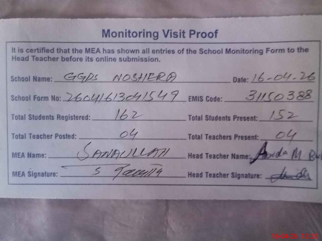 | EMIS Code: 31150388 | Name of School: GGPS NOSHERA | |||
