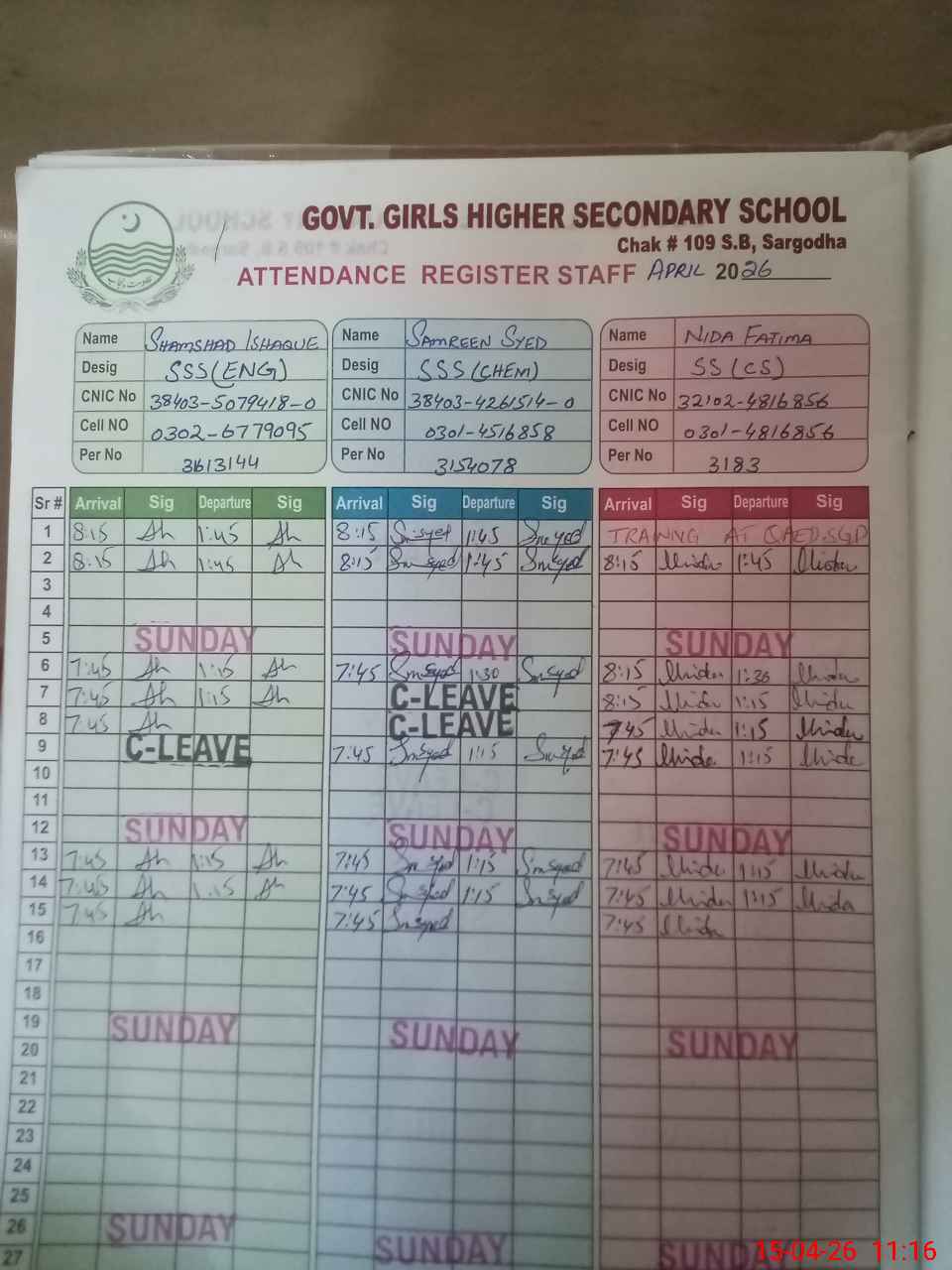 | 33**** | Qa**** Ya**** | PST Arts | Regular | 0 | 0 | 0 | 0 | 0 | 0 | 0 | 0 | 0 | Exam Duty |