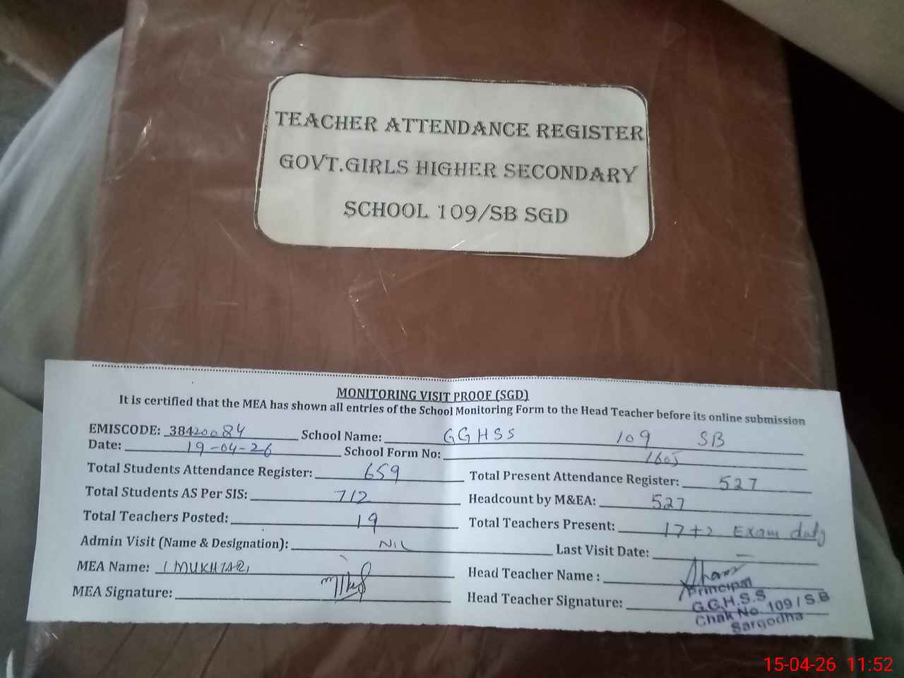 | EMIS Code: 38420084 | Name of School: GGHSS CHAK NO.109 SB | |||