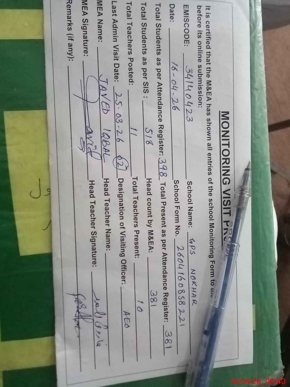 | EMIS Code: 34140423 | Name of School: GPS NOKHAR | |||
