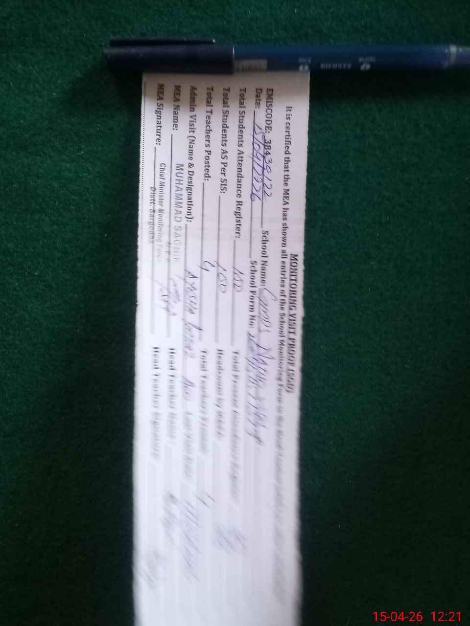 | Certified that this School was Inspected by the Undersigned MEA/DMO Today and the Information Stated Above is as Per Record. | |||||