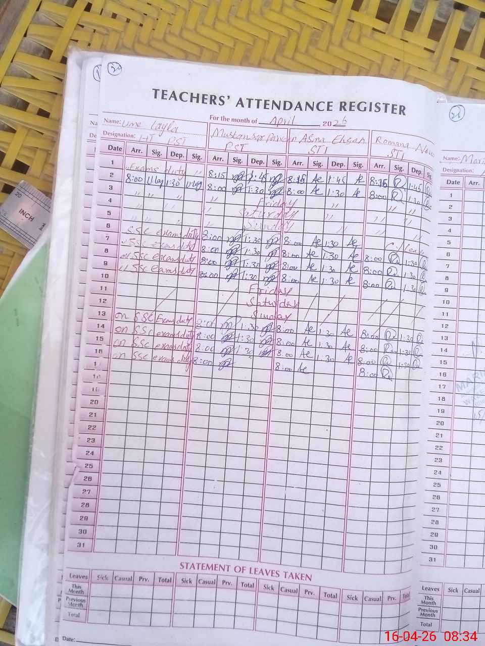 | 38**** | Um**** La**** | PST Science/Maths | Regular | 0 | 0 | 0 | 0 | 0 | 0 | 0 | 0 | 0 | Exam Duty |
