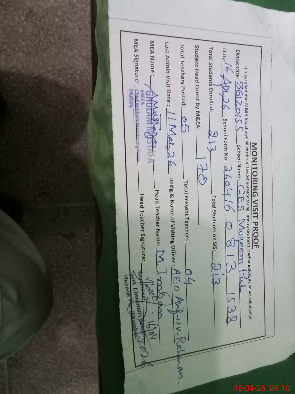| EMIS Code: 36120155 | Name of School: GES MUQEEM PUR P/O MATOTLI SHUJABAD | |||