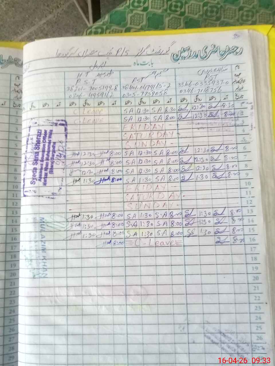 | Name: HA**** SA**** Designation: (School Headmaster's/Headmistress's) PST Phone/Cell Number: 03**** |
