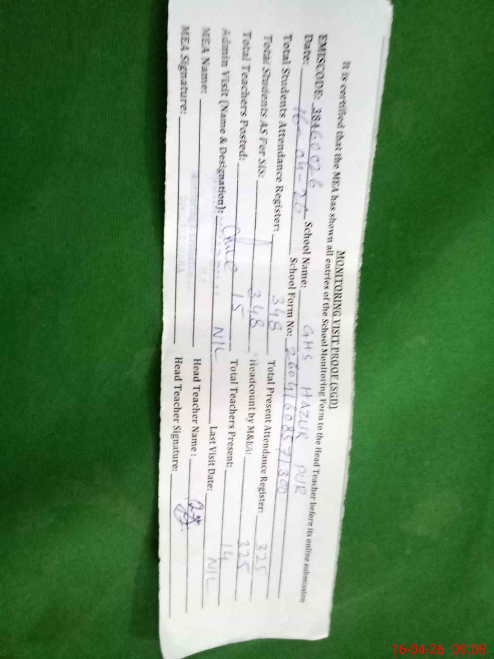 | EMIS Code: 38470026 | Name of School: GHS HAZOOR PUR | |||