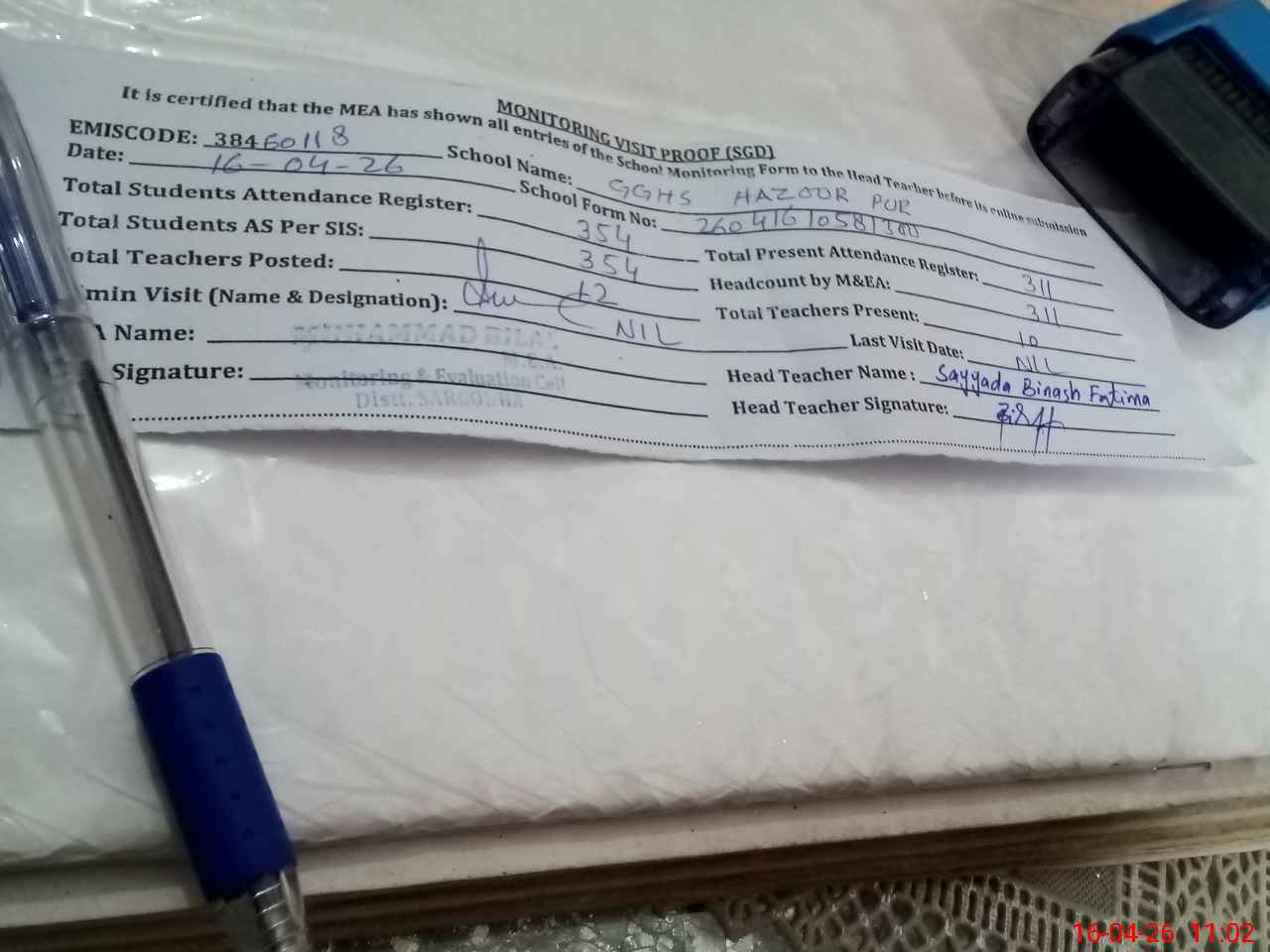 | EMIS Code: 38470118 | Name of School: GGHS HAZOOR PUR | |||