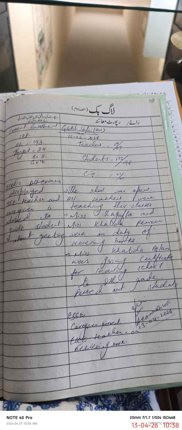 | Remarks (Use Separate Page if Required): nsb record was in lock and keys were with head teacher who was on duty of recieving books. Hence the incharge teacher was unable to show nab record | |||||