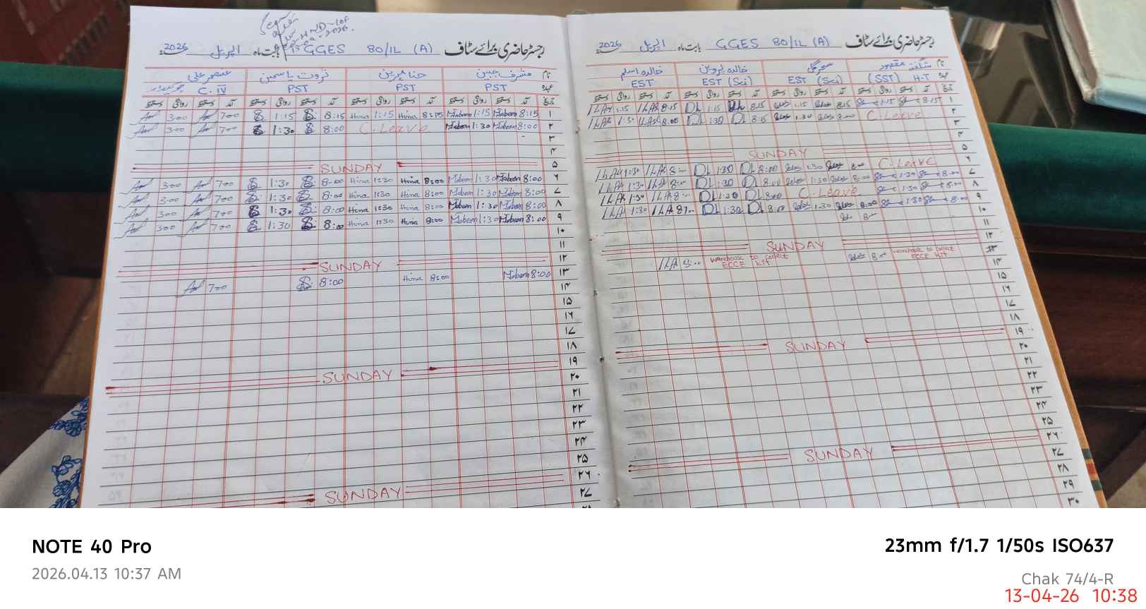 | Leave | Duty | Absent | Maternity | Medical | Ex- Pak |