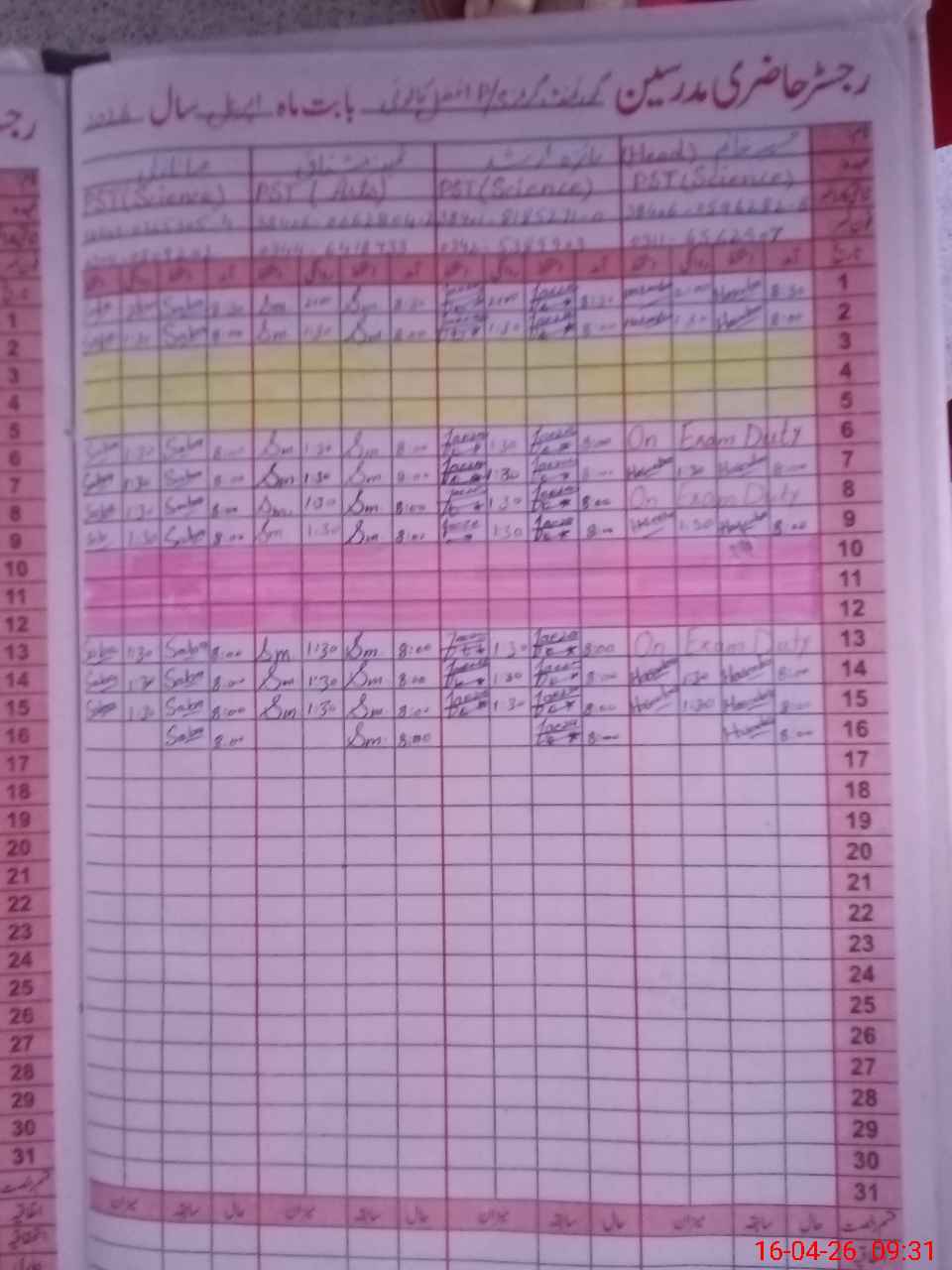 | Name: HA**** KH**** Designation: (School Headmaster's/Headmistress's) PST Phone/Cell Number: 03**** |