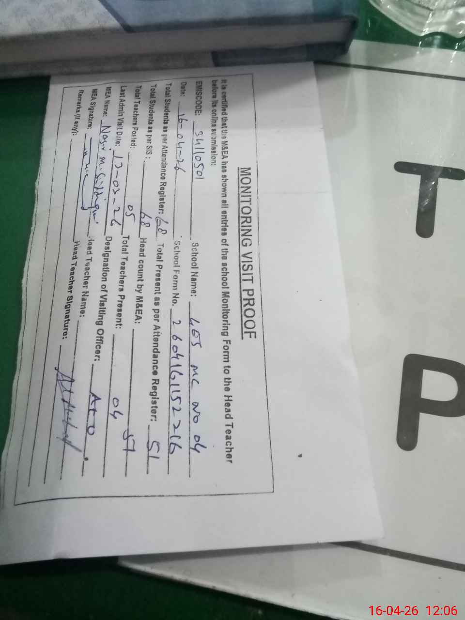 | Certified that this School was Inspected by the Undersigned MEA/DMO Today and the Information Stated Above is as Per Record. | |||||