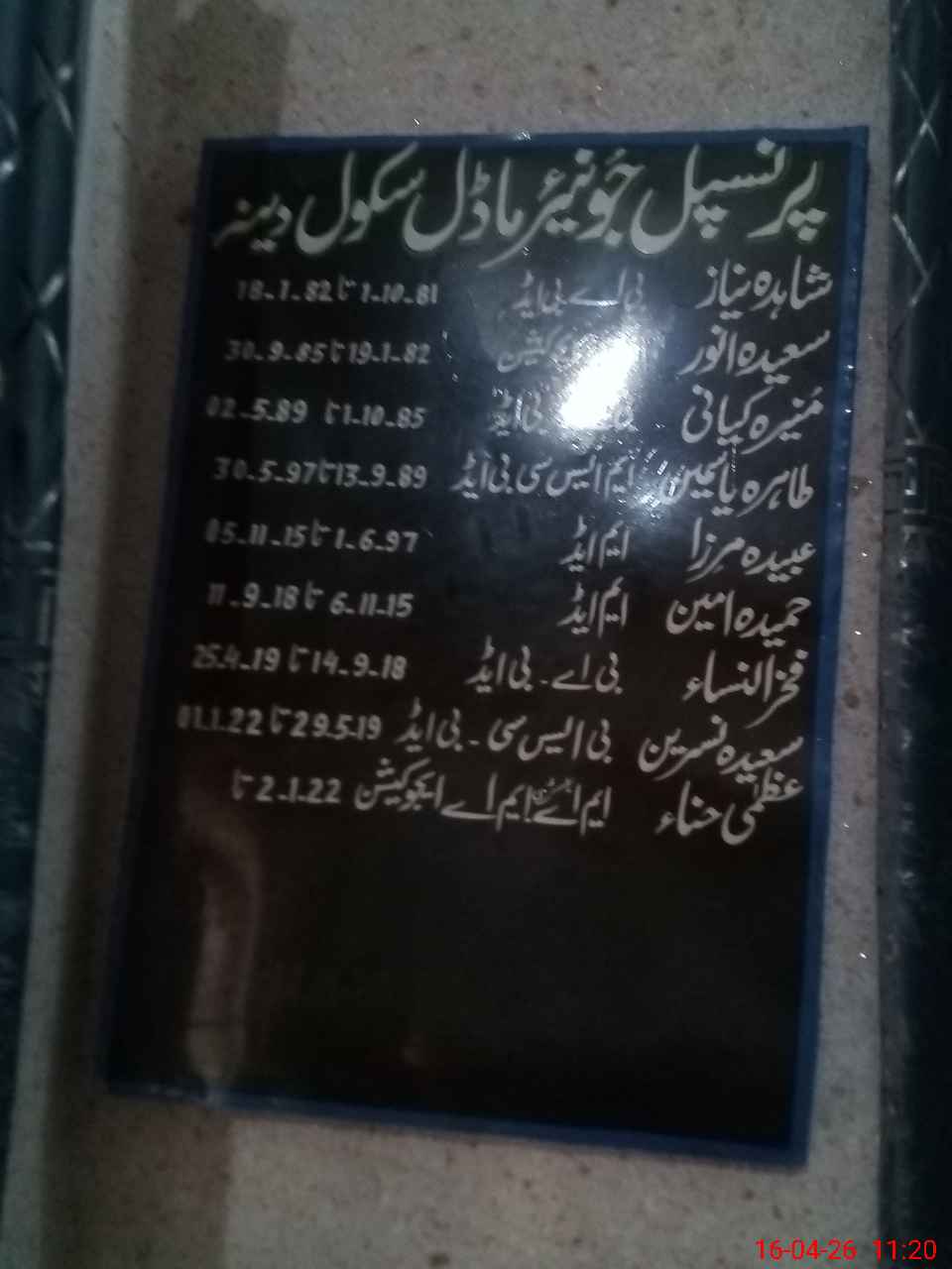 | District: JHELUM | Tehsil: DINA | Markaz: DINA - FEMALE | Level: Middle | |
