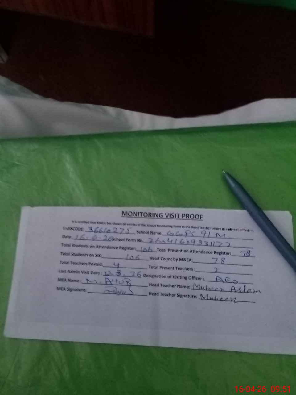 | EMIS Code: 36610275 | Name of School: GGPS CHAK NO. 91/M | |||